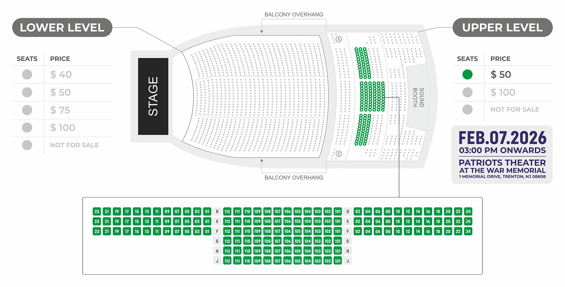 Address: Patriots theater at the war memorial, 1 Memorial Drive, Trenton, NJ 08608